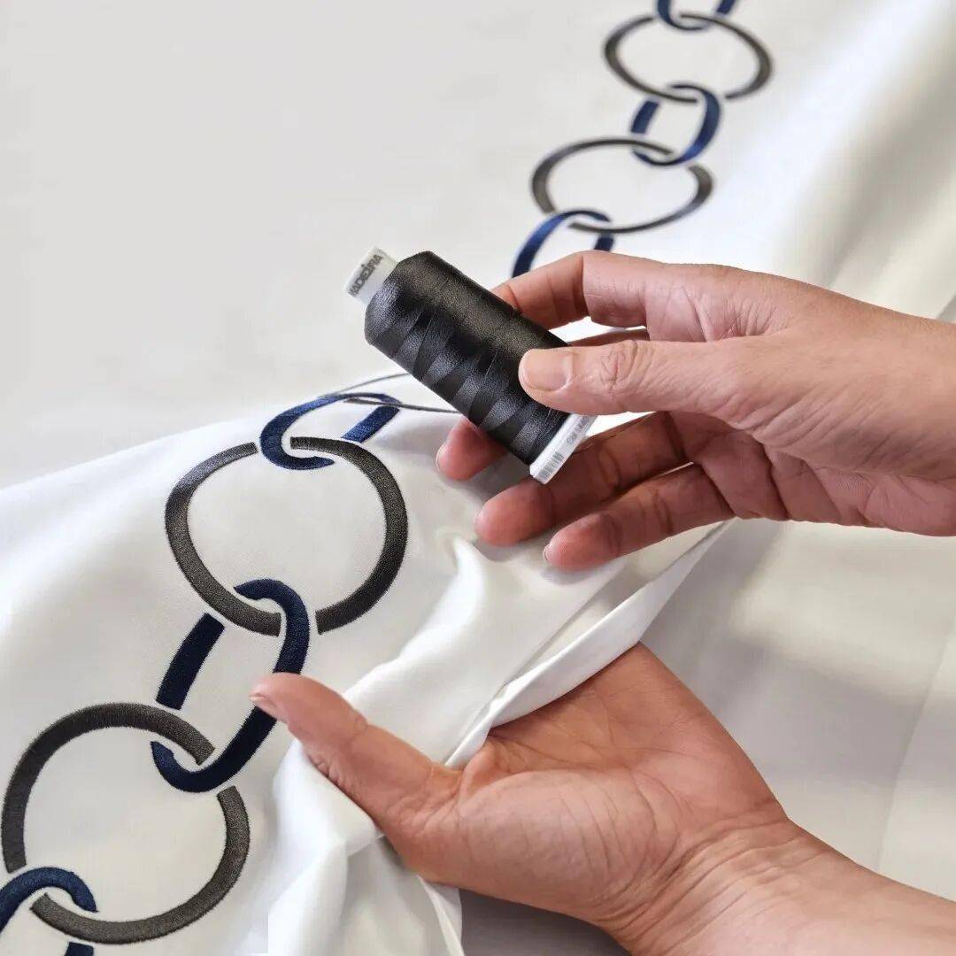 但在 Sharry 看来,真正让 Frette 与众不同的,不是这些 “名录式的荣耀”,而是一种对工艺与个体体验的执着。Frette 的床品以其独特的织造工艺和创新技术著称,许多系列采用了专利技术,使得面料在多次清洗后仍能保持柔软与舒适,延长使用寿命。此外,Frette 的刺绣工艺也极具特色,采用手工刺绣和定制设计,为每一件床品赋予独特的艺术价值。这些精湛的工艺和创新技术体现了 Frette 对细节和品质的极致追求,也让每一位顾客在使用过程中感受到与众不同的奢华体验。