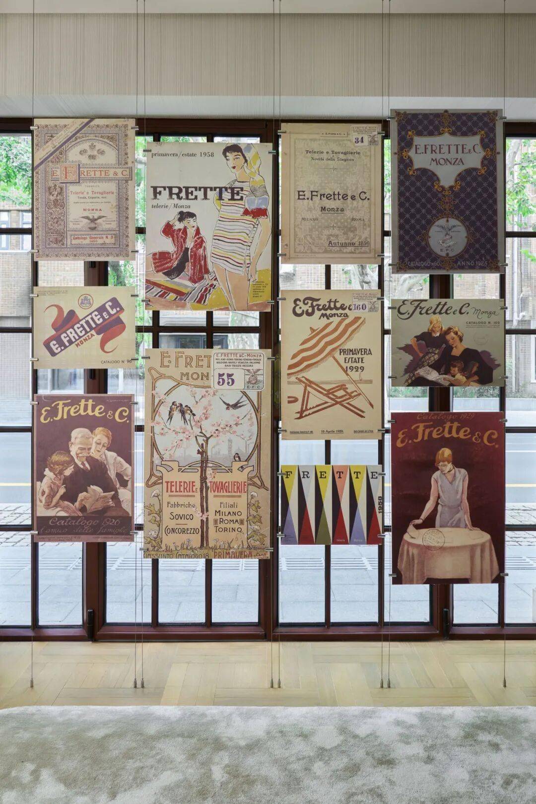 没有华丽的橱窗,也没有急切的销售指引。走进店铺,迎面而来的是历史与工艺的视觉叙事。墙面陈列着 Frette 从 19 世纪起的手稿与图案设计,床品展示区采用柔雅色调,让你觉得仿佛被邀请进入一位老朋友的起居室——静谧、柔和。