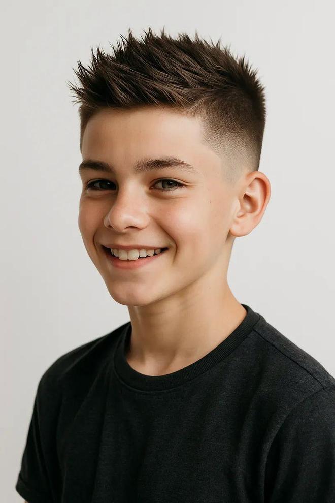 当然,毛刺造型的风格可以灵活调整:若将发胶换成更具质感的发蜡,毛刺会呈现出哑光的“微立体”效果,风格从“张扬酷感”转向“低调潮范”,日常上学也能轻松驾驭。